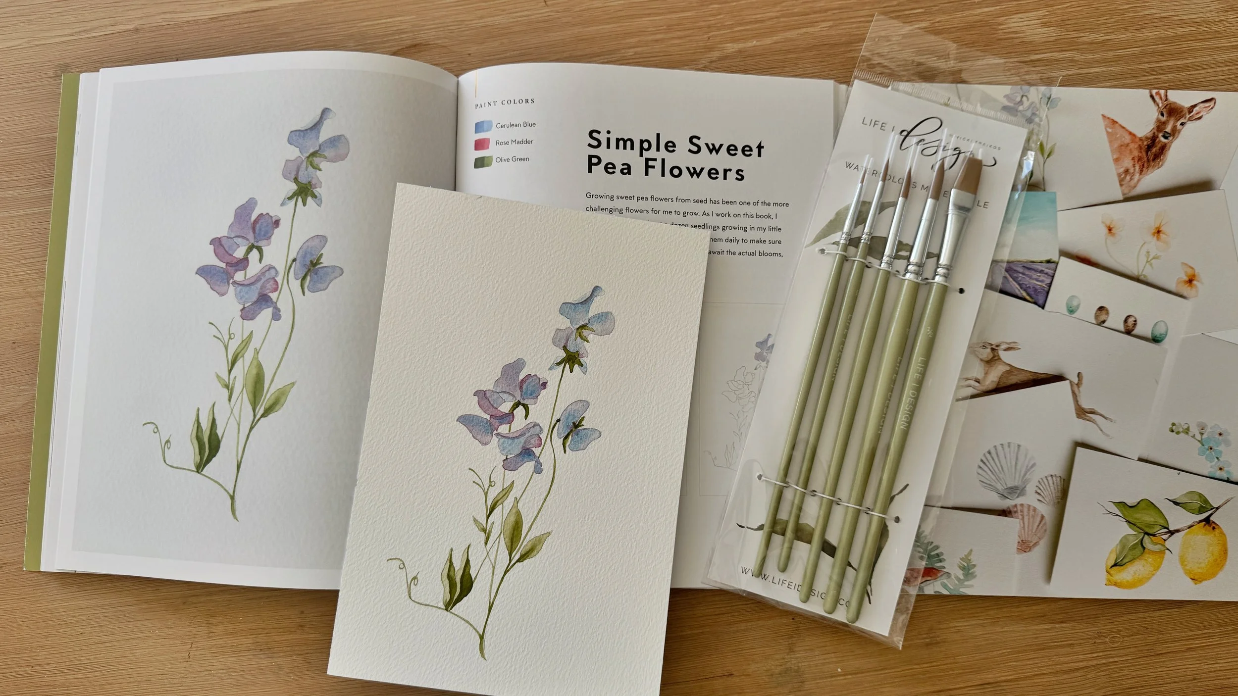 • A 2 hour guided watercolor workshop with Nicki Traikos where we will paint the simple sweet pea flower project from the book